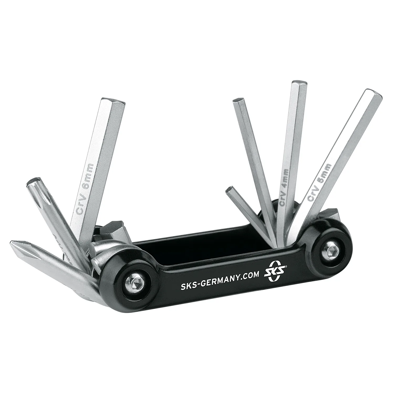 Cu cele 7 funcții integrate, cum ar fi o cheie Allen, o șurubelniță și o cheie Torx, multe reparații la bicicleta dvs. pot fi efectuate rapid. Unealta multifuncțională poate fi depozitată convenabil în geanta de neopren furnizată.